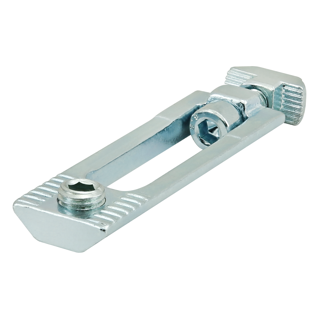 The milling connector provides a strong, internal fastening method that requires no profile machining. It allows infinite positioning along the mating profile and can be used even when the mating profile end is captivated. The point of the set screw bites into the bottom of the T-slot profile, making it a secure connection. The milling connector can be used in pairs.