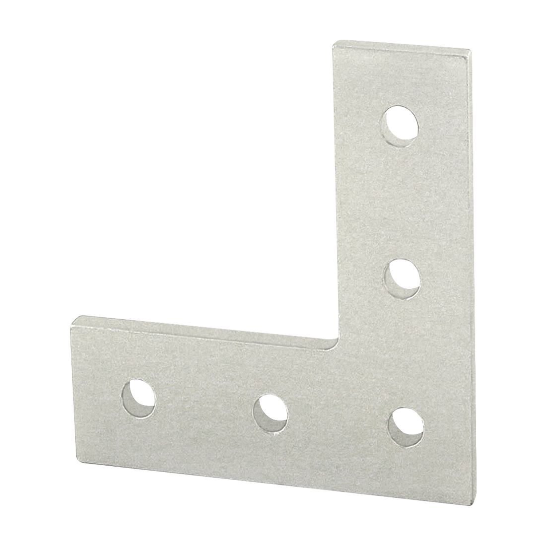 The 5 hole – “L” flat plate is a strong, external fastening method offering a long-lasting connection. This flat plate creates a 90 degree angle between profiles and is typically used to form a corner connection. The fastener is flush with the profiles, allowing for a larger clearance area. It requires no machining services, is easy to assemble, and can be reconfigured and reused. Tip: Pre-load your hardware prior to connecting profiles to simplify your assembly.
