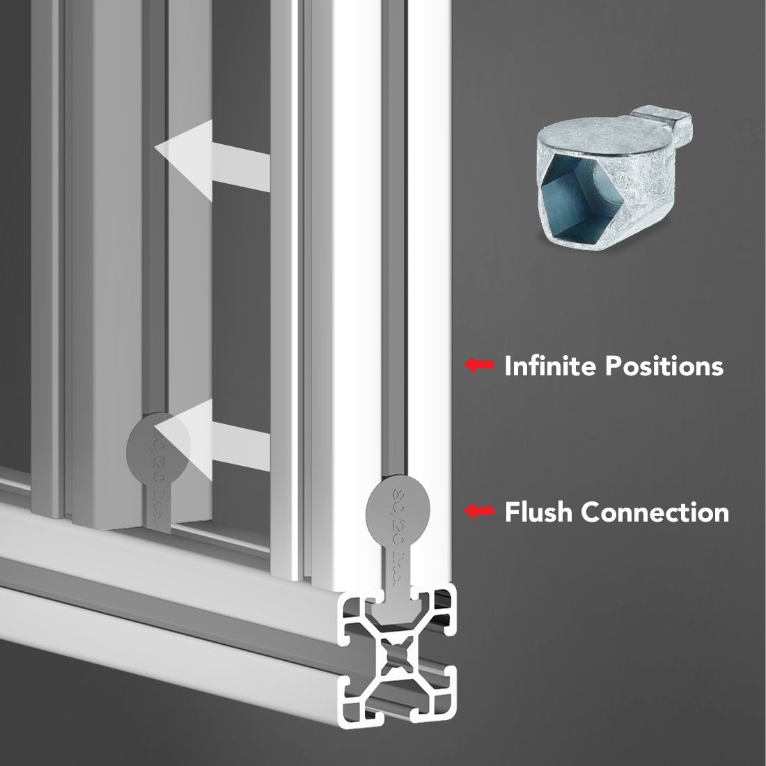 The anchor fastener cam is commonly used with a socket head cap screw and T-nut to form custom anchor fastener assemblies. An anchor fastener connection method requires a counterbore machining service on the mounting profile.