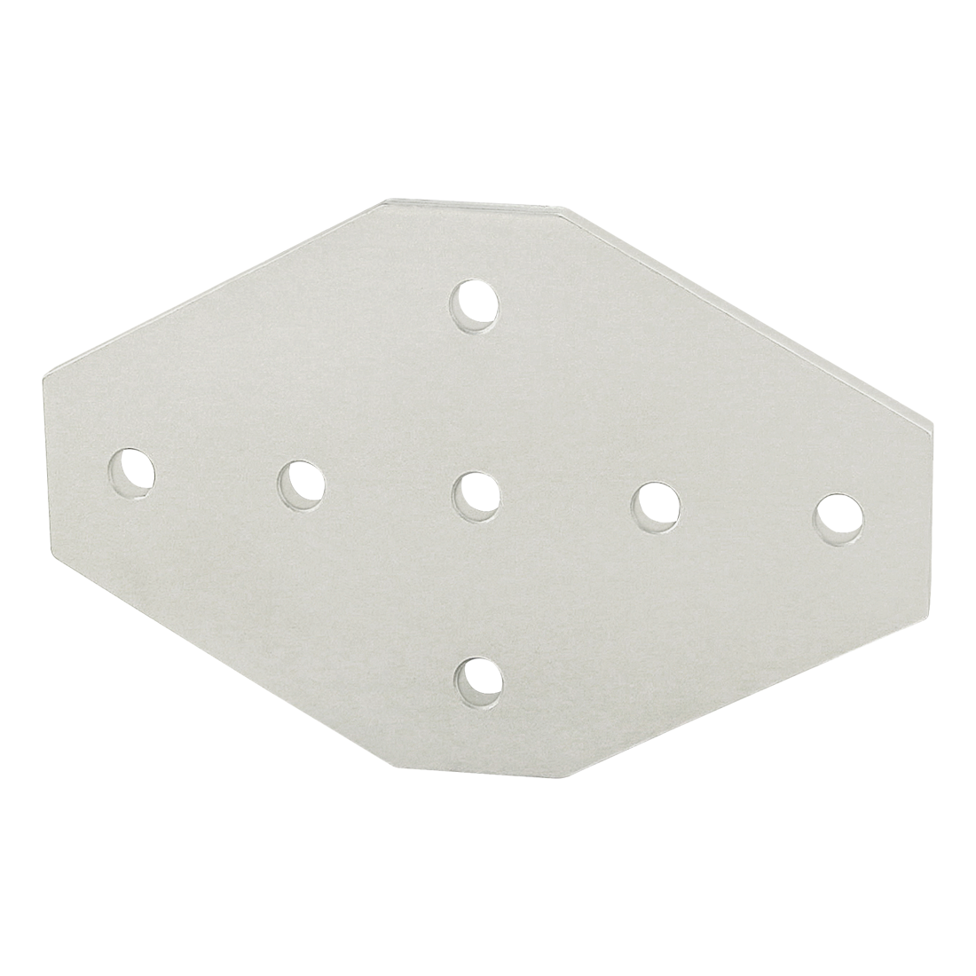 The 7 hole – cross flat plate is an external fastening method that can be used to join more than two profiles or even create a 4-way connection hub. It provides a strong, long-lasting connection that is easy to assemble and requires no machining services. The 7 hole – cross flat plate is durable and can be repositioned and reused. The suggested mounting hardware can be found on the “Suggested Hardware” tab. Tip: Use double or triple slide-in economy T-nuts to save time and money. Pre-load your hardware prior to connecting profiles to simplify your assembly.