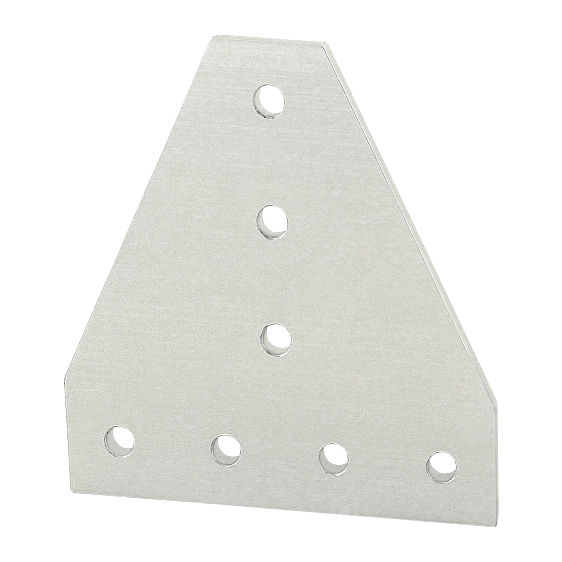 The 7 hole – tee flat plate is a strong, external fastening method that requires no machining services and can be used to connect more than two profiles together. This fastening option can provide infinite positioning along the profile T-slot, allowing for a large degree of adjustability. It is a long-lasting connection that is easily assembled and can be repositioned and reused. The suggested mounting hardware can be found on the “Suggested Hardware” tab. Tip: Use double or triple slide-in economy T-nuts to save time and money. Pre-load your hardware prior to connecting profiles to simplify your assembly.