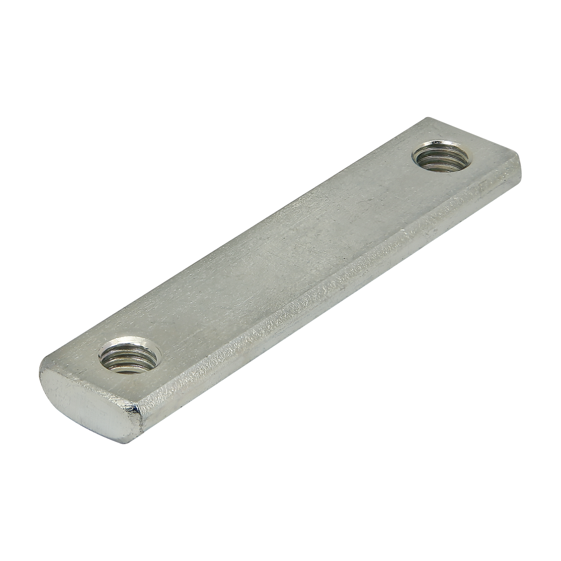 The double anchor slide-in T-nut is used with a double anchor fastener. It loads from the profile end and is a strong, durable connection. There are options available in size, thread, and finish. Important Note: The double anchor slide-in T-nut can only be used with a double anchor fastener.