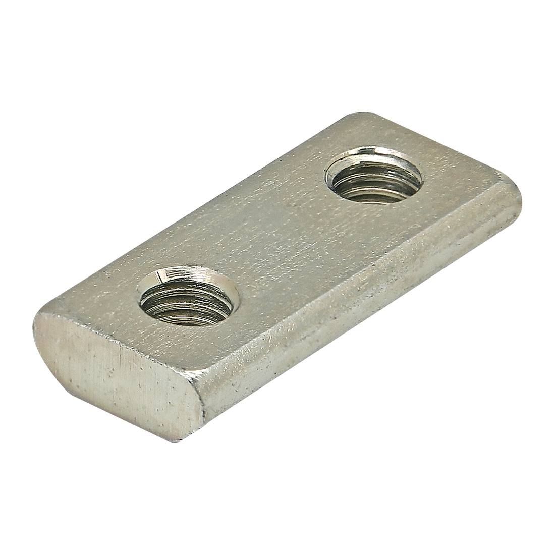 The double anchor slide-in T-nut is used with a double anchor fastener. It loads from the profile end and is a strong, durable connection. There are options available in size, thread, and finish. Important Note: The double anchor slide-in T-nut can only be used with a double anchor fastener.