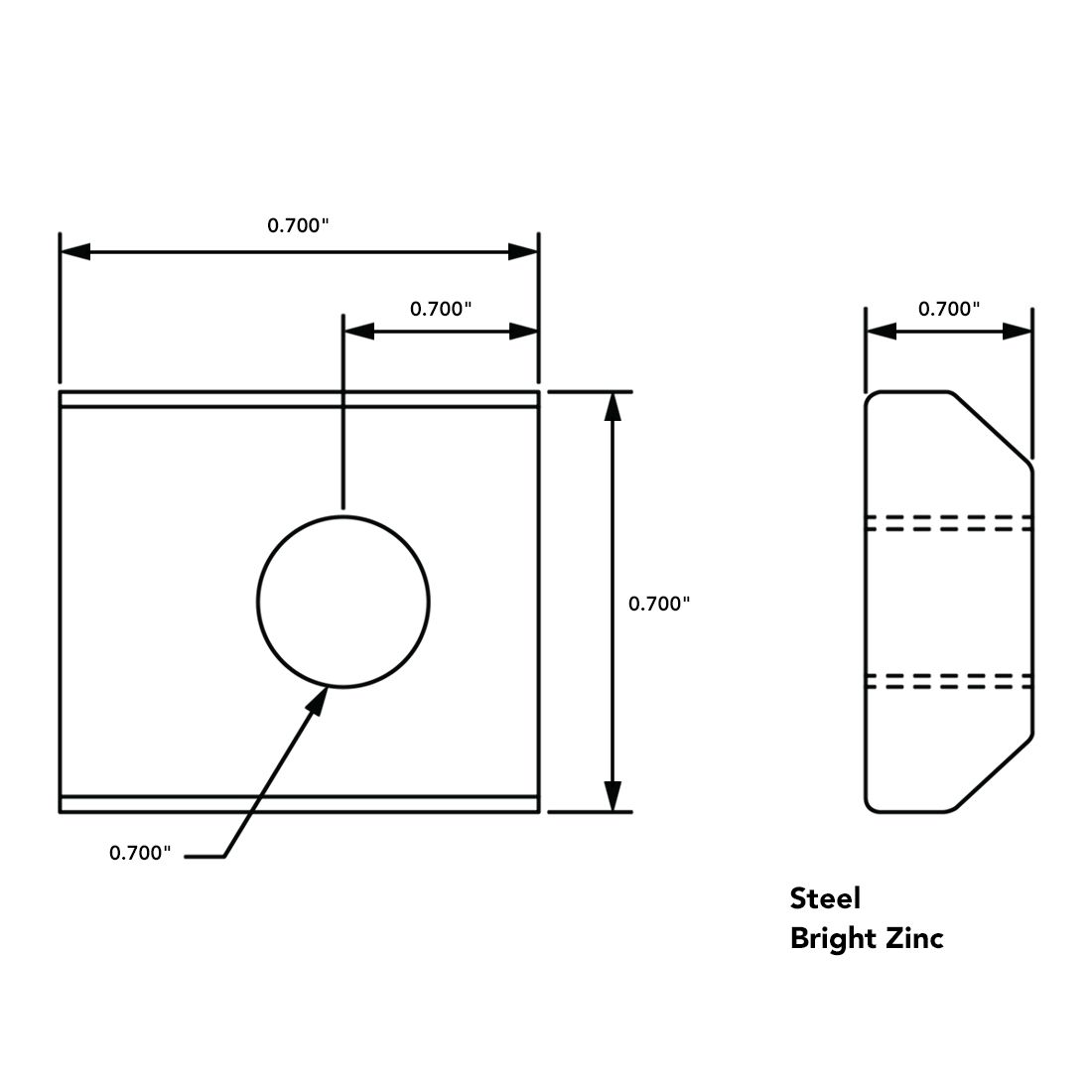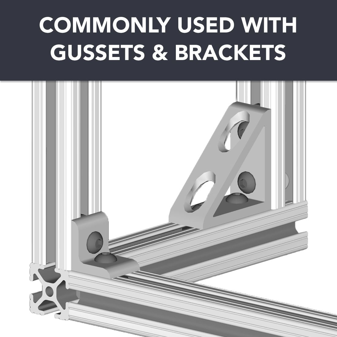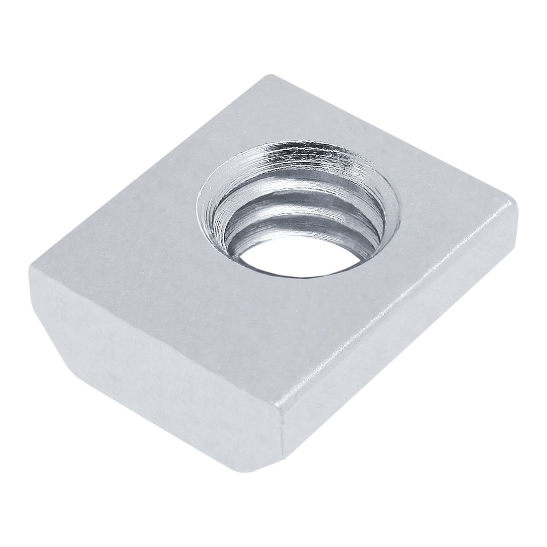The standard slide-in T-nut is a fastening option that loads from the profile ends. It is a strong, durable connection that is available with options in size, thread, and finish.