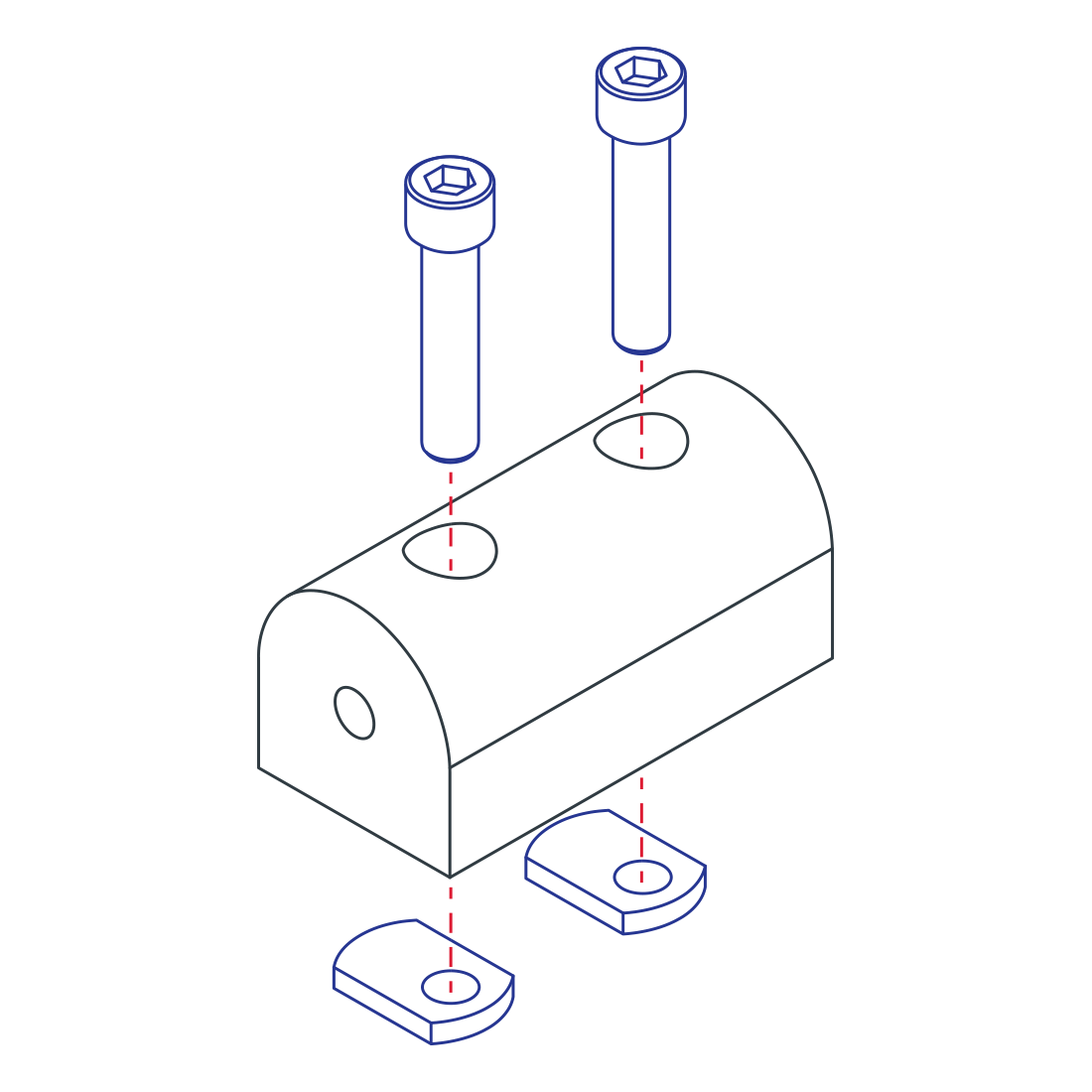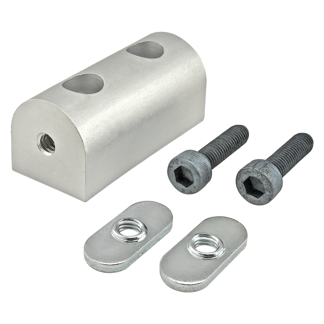 The universal structural pivot nub is an external fastening method commonly used as a connection hub to create a structural pivot ranging from 0-180 degrees either parallel or perpendicular to the mounting profile. The universal structural pivot nub requires no machining services and can be easily assembled, lending itself to repositioning and reuse. The suggested mounting hardware can be found on the “Suggested Hardware” tab.