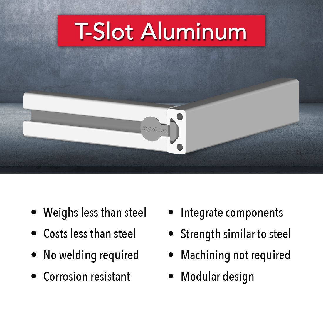 25-2514 is a 25mm x 12.5mm metric 25 series rectangular T-slot profile with one open T-slot on one 25mm face. The profile is smooth, which makes it resistant to dirt and debris buildup while also being easy to clean. The 25-2514 profile is compatible with 25 series fasteners. It is a thinner profile that connects easily to flat surfaces and works well as a supporting structure or spacer for mounting accessories such as handles, door tracks, rails, valves or sensors.