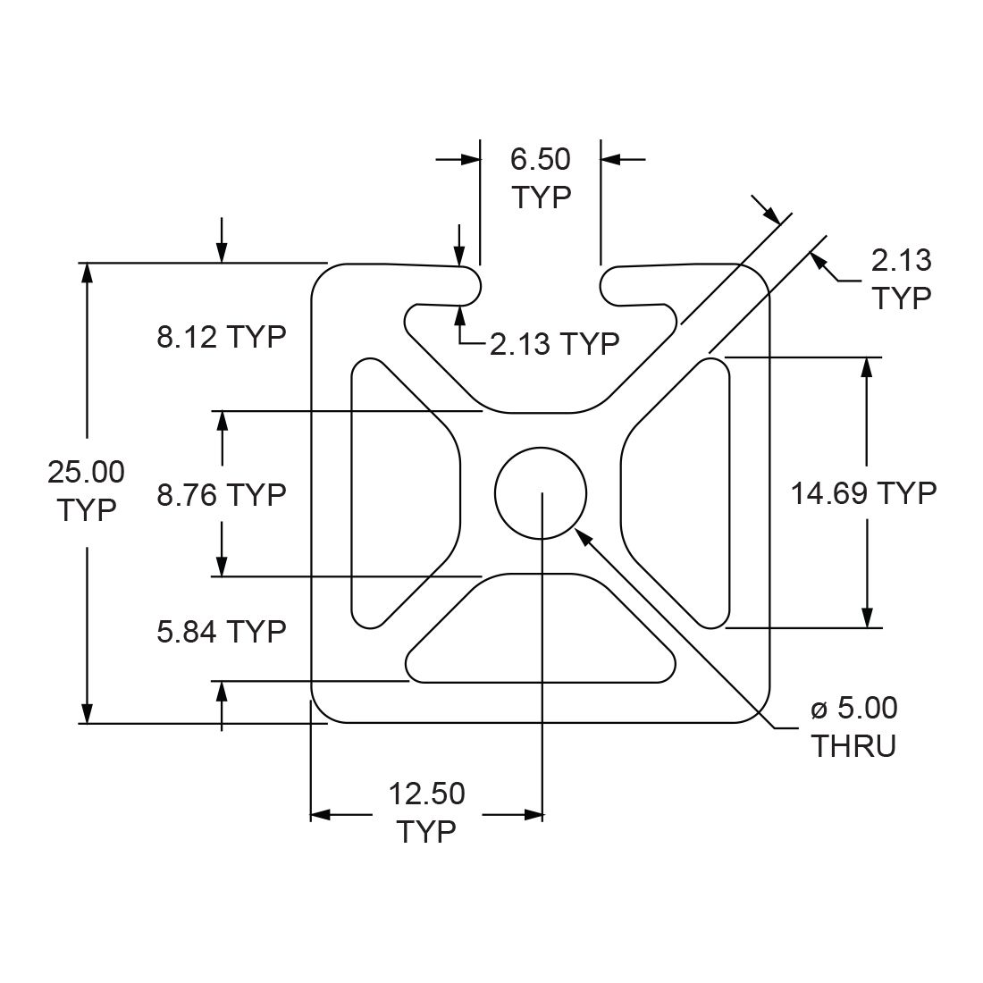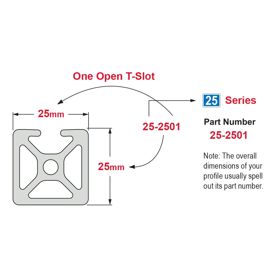 25mm X 25mm T-Slotted Profile – Single Open T-Slots