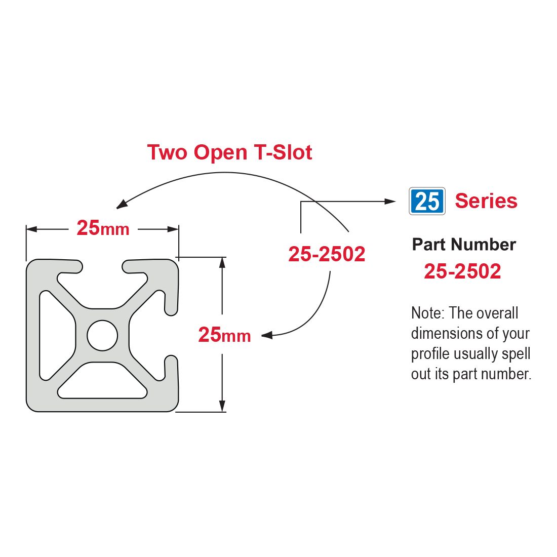 25mm X 25mm T-Slotted Profile – Two Adjacent Open T-Slots