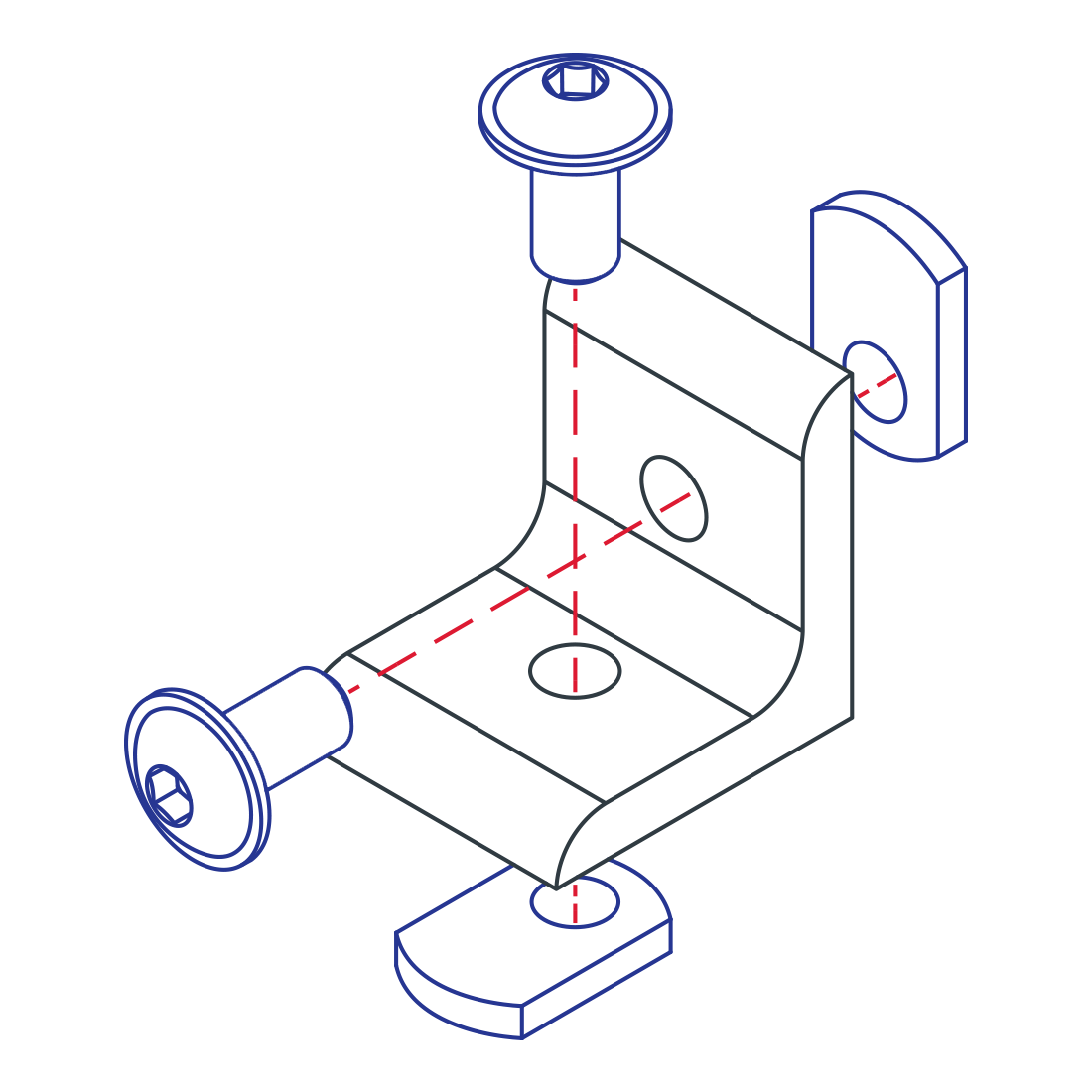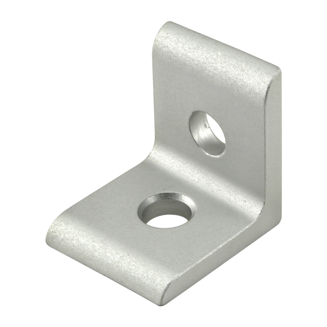 The 2 hole – inside corner bracket is an external fastening method that creates a 90 degree connection. It requires no machining services and can provide infinite positioning along the profile T-slot, allowing a large degree of adjustability. It is a fastening method that can be repositioned and reused.
