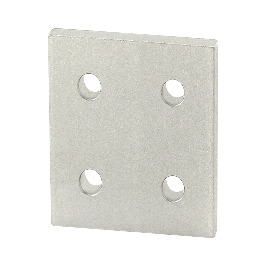 The 4 hole – square flat plate is an external fastening method that requires no machining services. It is a durable connection that can be repositioned and reused. This connection can provide infinite positioning along the profile T-slot, allowing for a large degree of adjustability. The 4 hole – square flat plate engages the 2-degree drop-lock feature when the assembly bolts are tightened to the required torque, creating a strong connection. Tip: Pre-load your hardware prior to connecting profiles to simplify your assembly.