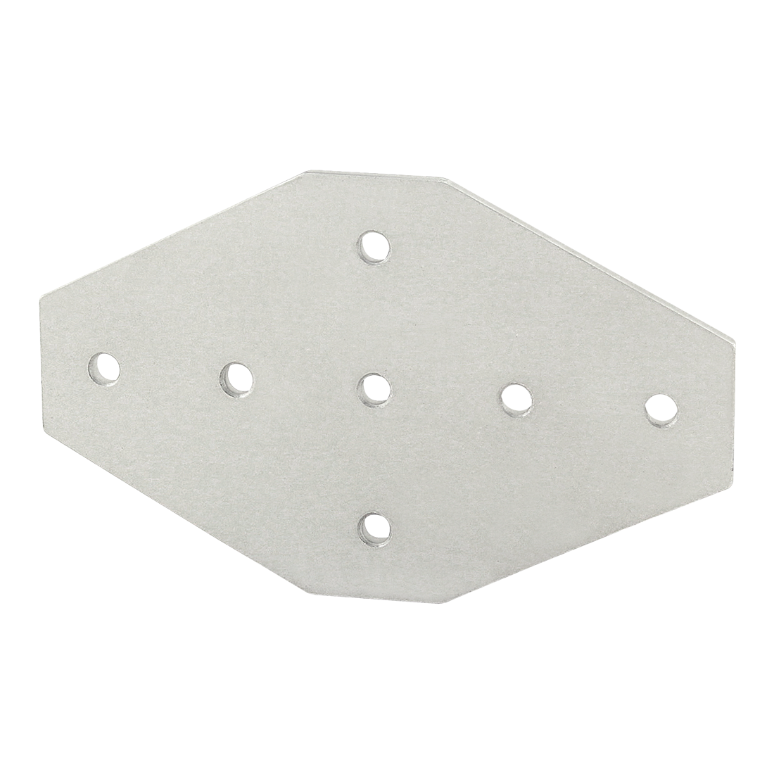 The 7 hole – cross flat plate is an external fastening method that can be used to join more than two profiles or even create a 4-way connection hub. It provides a strong, long-lasting connection that is easy to assemble and requires no machining services. The 7 hole – cross flat plate is durable and can be repositioned and reused. The suggested mounting hardware can be found on the “Suggested Hardware” tab. Tip: Use double or triple slide-in economy T-nuts to save time and money. Pre-load your hardware prior to connecting profiles to simplify your assembly.