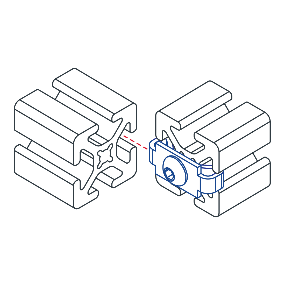 The wing clip is commonly used with a button head socket cap screw to create custom end fastener assemblies. The winged tabs of the clip prevent the mating profile from rotating. An end fastener connection method requires two machining services; an end tap on the mounting profile and an access hole in the mating profile in order to reach the screw head.