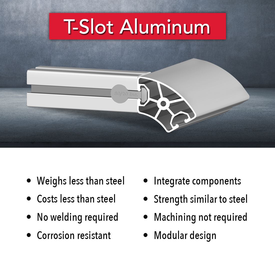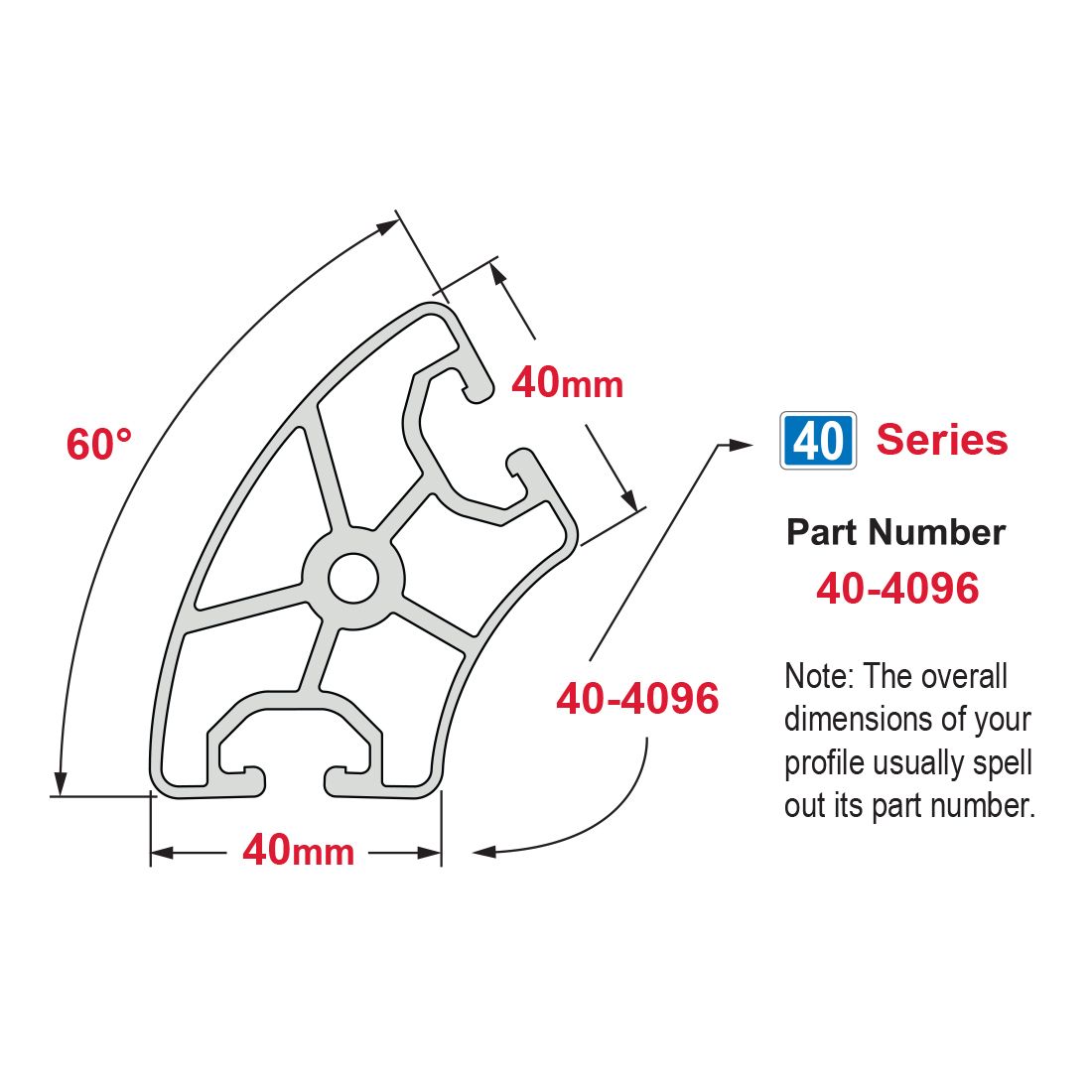 40-4096 is a 40mm metric 40 series T-slot profile with a 60 degree radius and two opposite open T-slots, one on each of the 40mm profile faces. The profile is smooth, which makes it resistant to dirt and debris buildup while also being easy to clean. The 40-4096 profile is compatible with 40 series fasteners.This profile lends itself to workstations, kiosks or point of purchase displays because panels or other support structures can be easily placed in the T-slots allowing a continuous surface and aesthetic appearance.