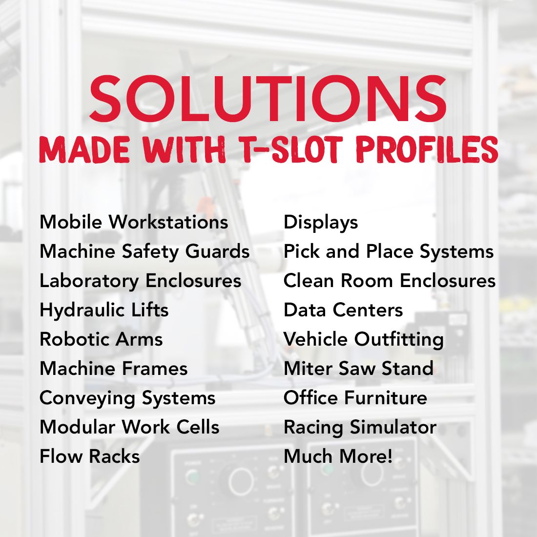 40-4040-Lite is a 40mm x 40mm lite metric 40 series square T-slot profile with four open T-slots, one on each 40mm face. The profile is smooth, which makes it resistant to dirt and debris buildup while also being easy to clean. The 40-4040-Lite profile is compatible with all 40 series fasteners. This profile lends itself to machine guards, enclosures, work benches, or displays. The four open T-slots enable access from any direction and are useful for mounting accessories.