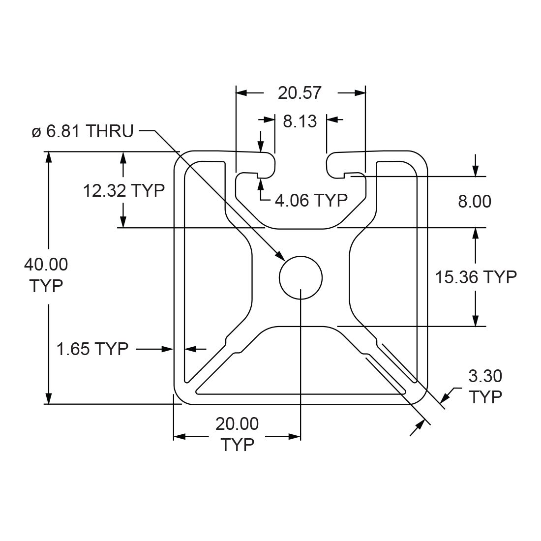40mm X 40mm T-Slotted Profile – Single Open T-Slots