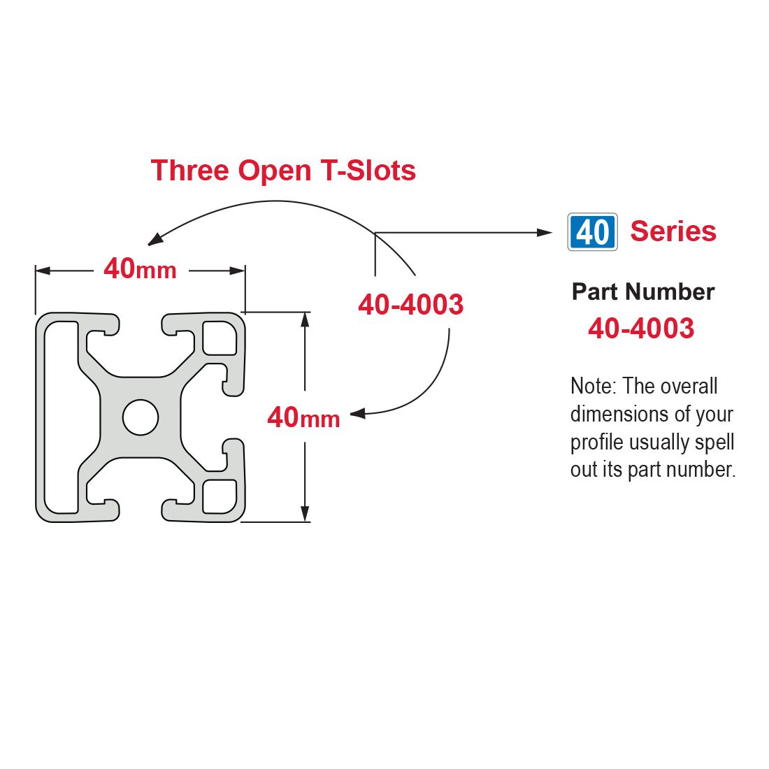 40mm X 40mm T-Slotted Profile – Three Adjacent Open T-Slots