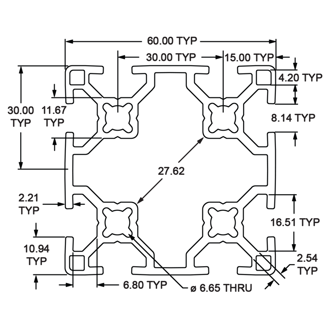 60mm X 60mm T-Slotted Profile – Eight Open T-Slots