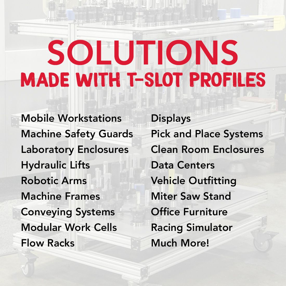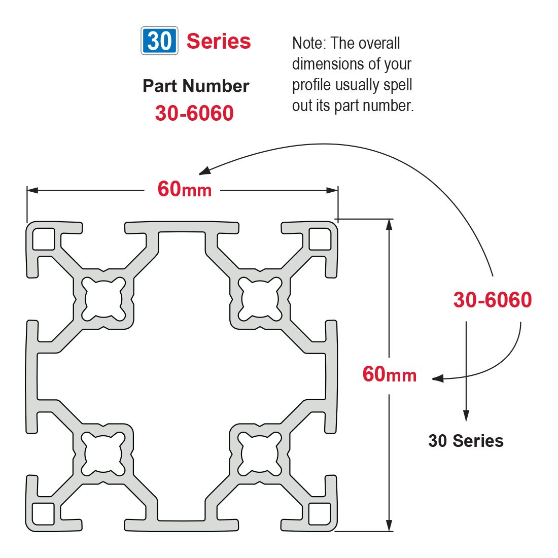 30-6060 is a 60mm x 60mm metric 30 series square T-slot profile with eight open T-slots, two on each 60mm face. The profile is smooth, which makes it resistant to dirt and debris buildup while also being easy to clean. The 30-6060 profile is compatible with 30 series fasteners. The eight open T-slots and strength make it a great choice for automation applications, machine frames and workstations.