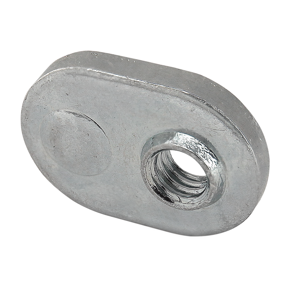 The slide-in economy T-nut with offset thread is a cost-effective fastening option available with options in size, material, and finish. It loads from the profile ends and has a pilot thread projection that adds additional threading for increased strength. The offset thread of the slide-in economy T-nut creates clean connections, making it ideal for corner connections because the T-nut doesn’t extend beyond the length of the profile. This T-nut is available in a double or triple configuration. Tip: Position the pilot projection down in the T-slot to avoid an uneven connection or crashing.