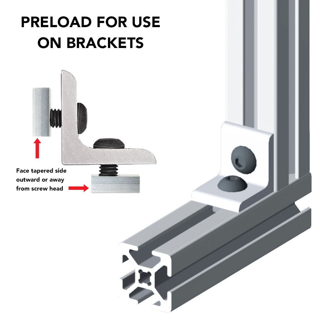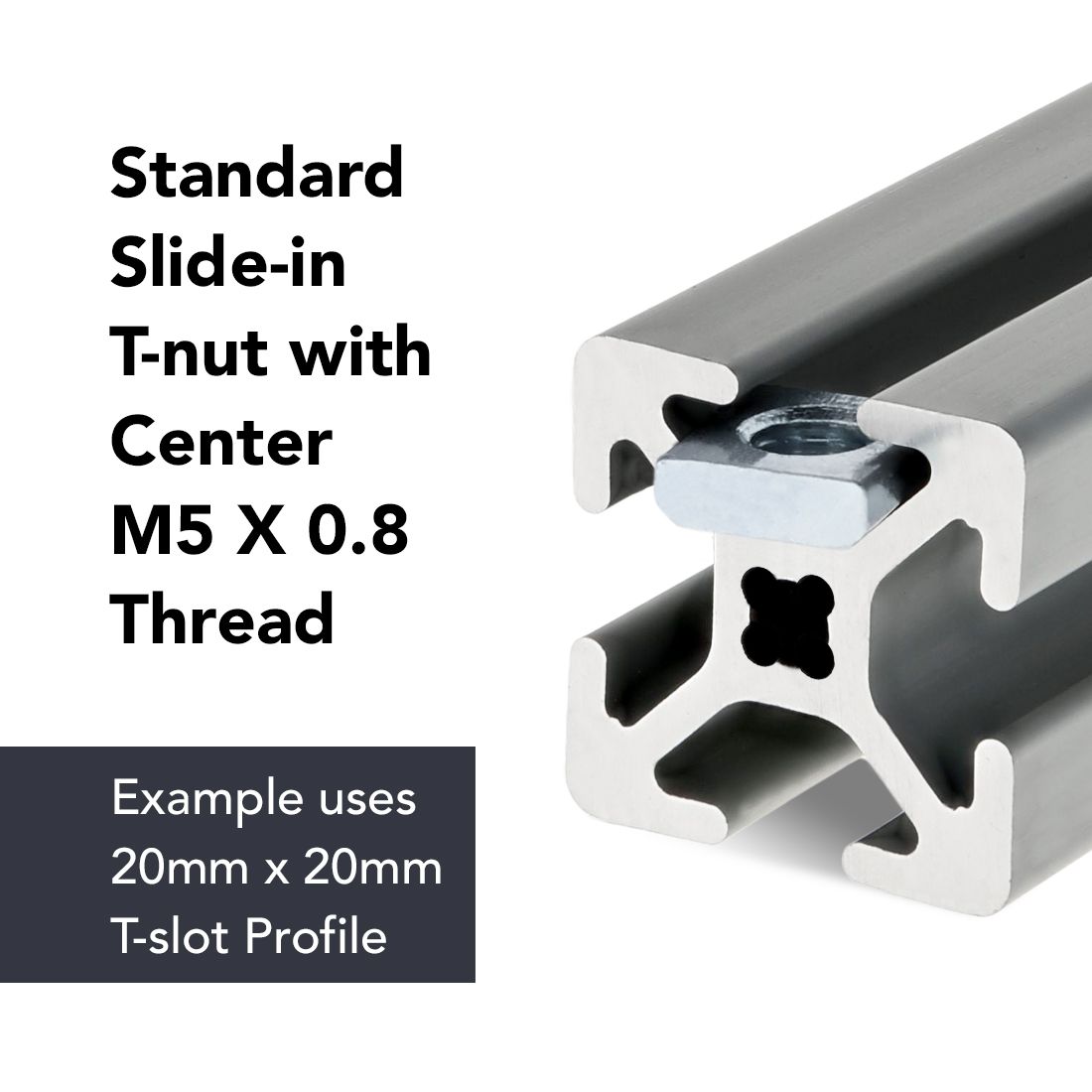 The slide-in economy T-nut block is a fastening option that loads from the profile ends. It is the most cost-effective slide-in T-nut and also provides infinite positioning along the profile T-slot. This fastener is available in a variety of sizes and threads.