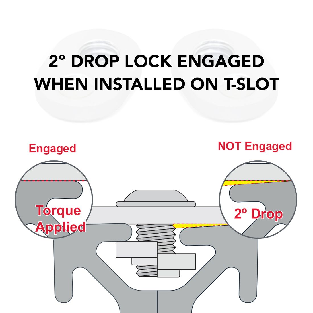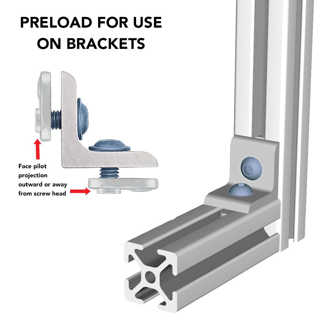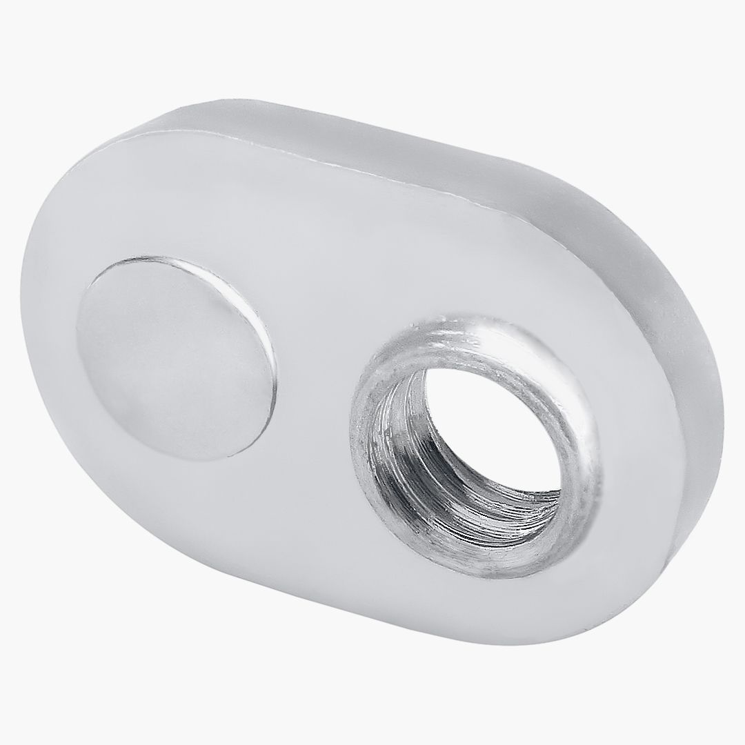 The slide-in economy T-nut with offset thread is a cost-effective fastening option available with options in size, material, and finish. It loads from the profile ends and has a pilot thread projection that adds additional threading for increased strength. The offset thread of the slide-in economy T-nut creates clean connections, making it ideal for corner connections because the T-nut doesn’t extend beyond the length of the profile. This T-nut is available in a double or triple configuration. Tip: Position the pilot projection down in the T-slot to avoid an uneven connection or crashing.